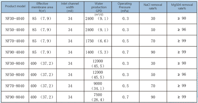 2. The water production and desalination rate of the nanofiltration membrane module are the average values, and the error of the water production of a single membrane module is within 10%.